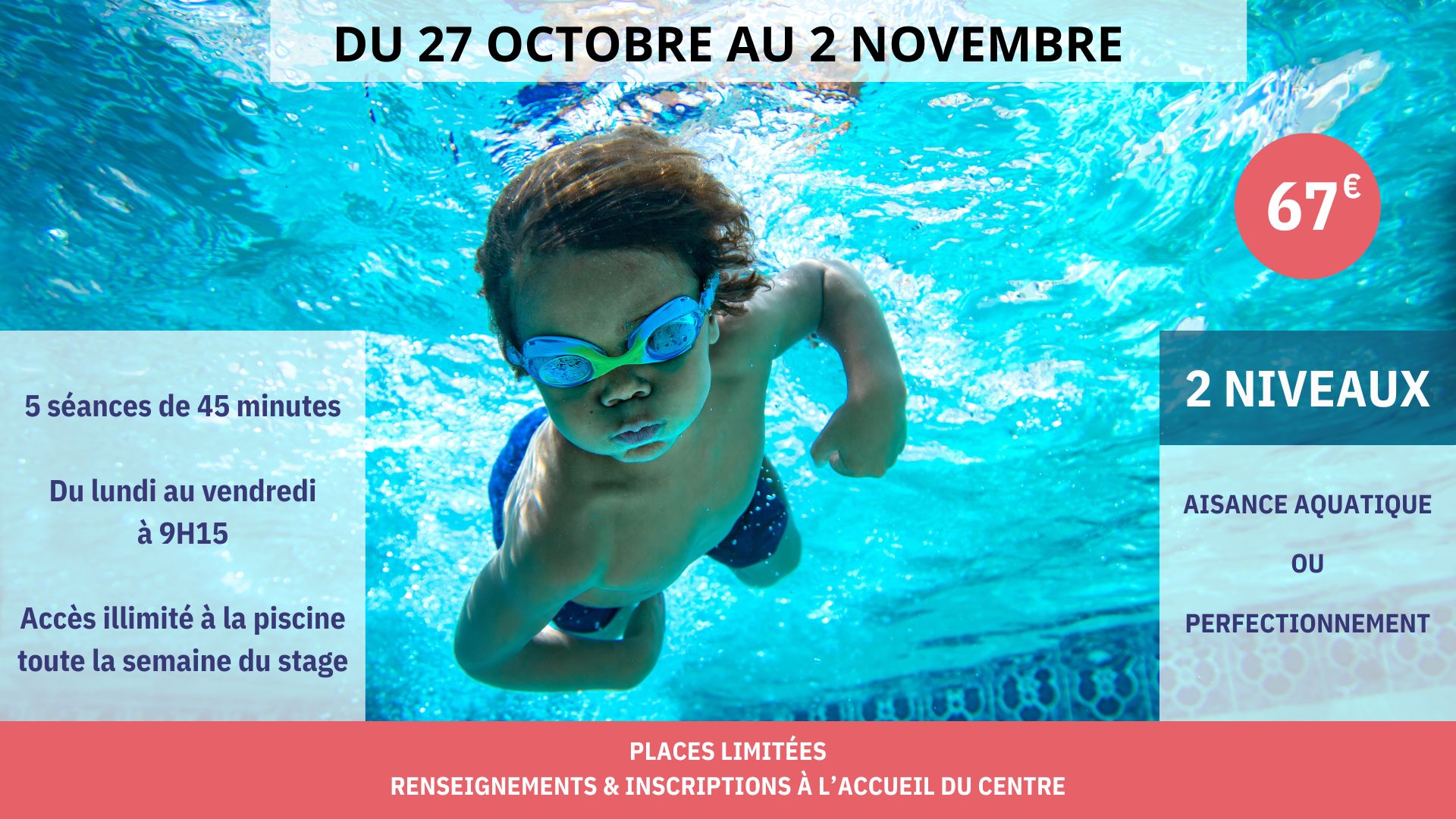 Découvrez l’espace aquatique avec son bassin de nage, ses bassins ludiques et son incontournable toboggan géant pour le plus grand plaisir des petits comme des grands !!
